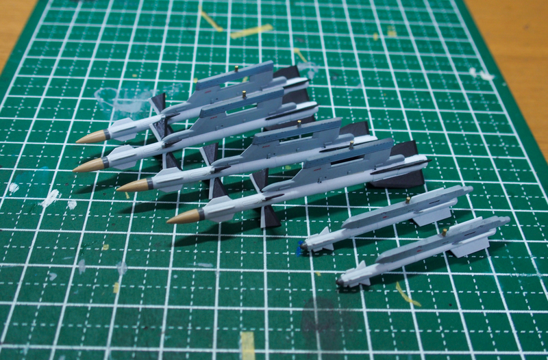 R-27は長さからおそらくアクティブレーダー誘導のR-27AEなのでR-77と被りそうなので今回はR-77の方をナシに。塗装はR-27の方が大変(黒い部分)でしたので少し後悔しています。