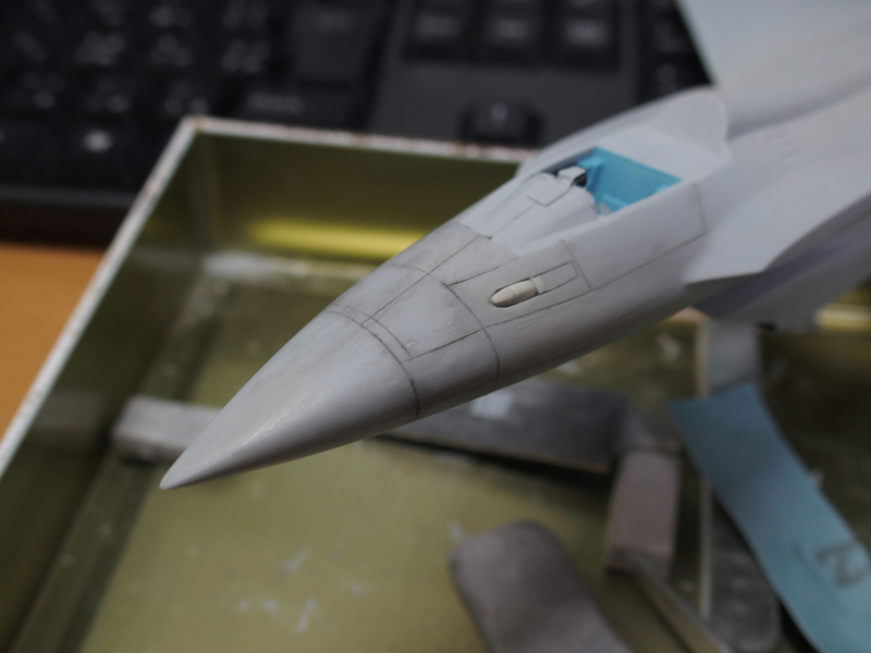 それから実際の試作機ではおそらくレドームにレーダー未搭載なので、彫り直してMIG-29クラスのレーダーは積めそうなサイズに。